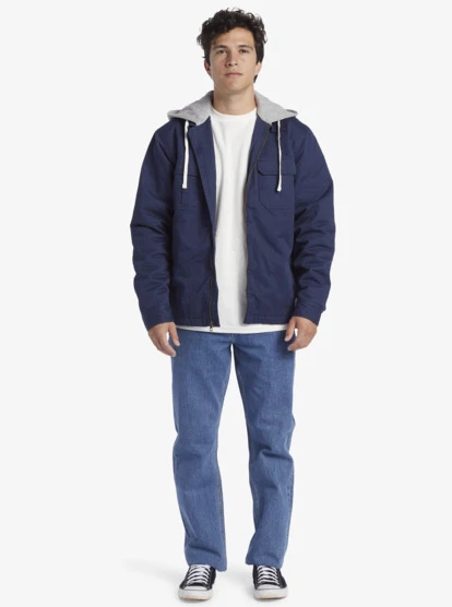 Designed with a contrasting jersey hood and cotton construction with a diamond quilted lining, the Quiksilver New Aitor Hooded Jacket has a regular fit, two side piped pockets, and two chest pocket. Complete with a full zip front, its a perfect piece for your active lifestyle.