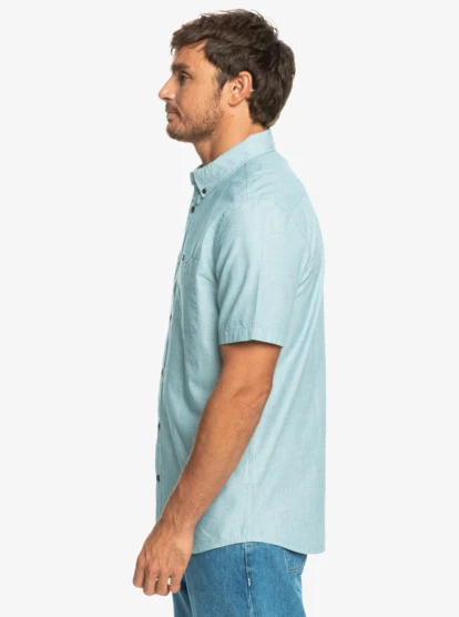 Experience easy summer style with our Quiksilver Winfall Short Sleeve Shirt. Crafted from textured cotton fabric, this classic-fit shirt features a regular button closure, chest pocket, and slightly curves hem.